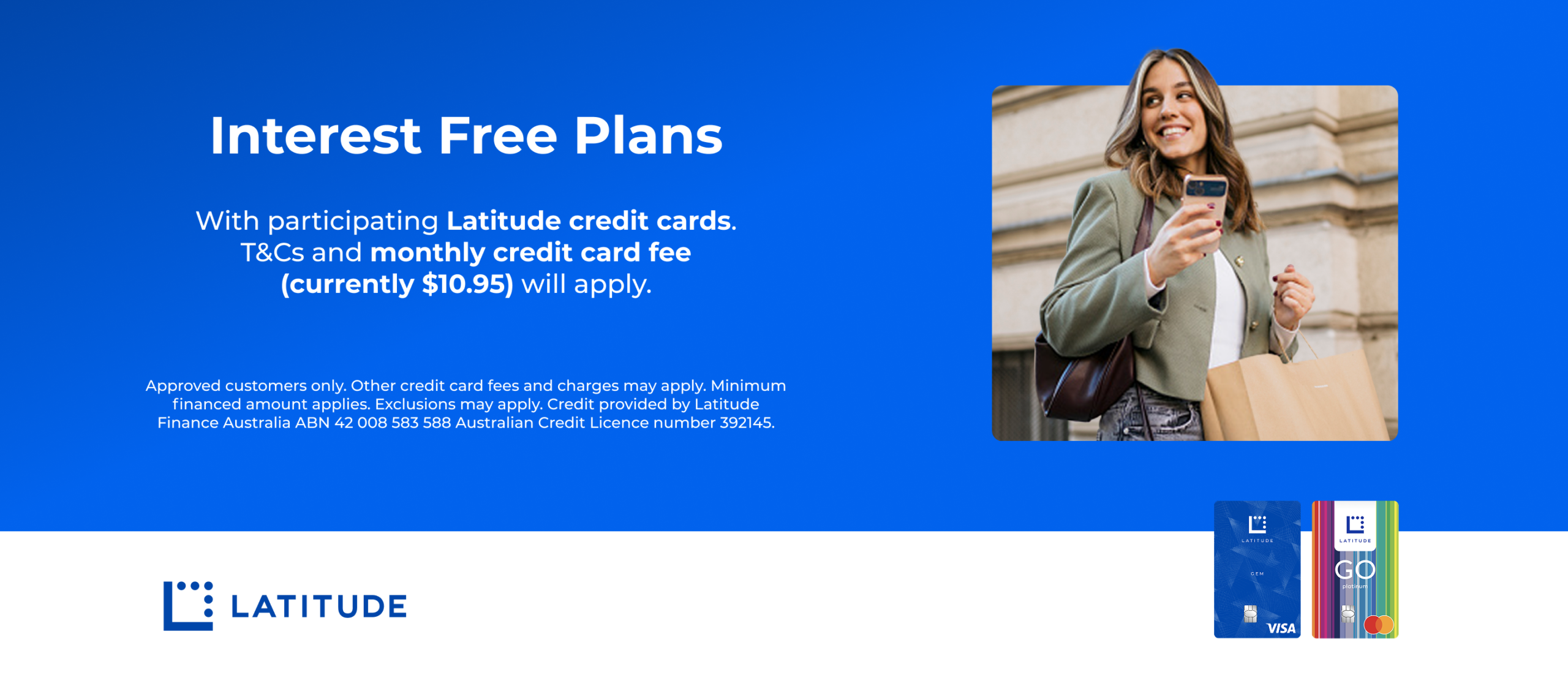 *Approved customers only using a Minimum Monthly Payment Plan. Monthly credit card fee applies, currently $10.95 (subject to change). Paying only the minimum monthly payments will not pay out the plan. After the interest free plan ends interest will be charged on any outstanding balance at the expired plan rate, currently 29.99% p.a. (subject to change). If you miss a payment late fees will apply and interest may apply. Interest may also be charged on other purchases and transactions made on your Latitude credit card. Latitude Credit Card General Terms and Conditions set out the T&Cs for the Latitude Gem Visa credit card. Credit provided by Latitude Finance Australia ABN 42 008 583 588 Australian Credit Licence number 392145.