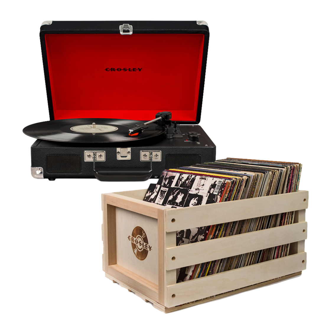 Crosley Cruiser Bluetooth Portable Turntable – Black + Bundled Crosley Record Storage Crate