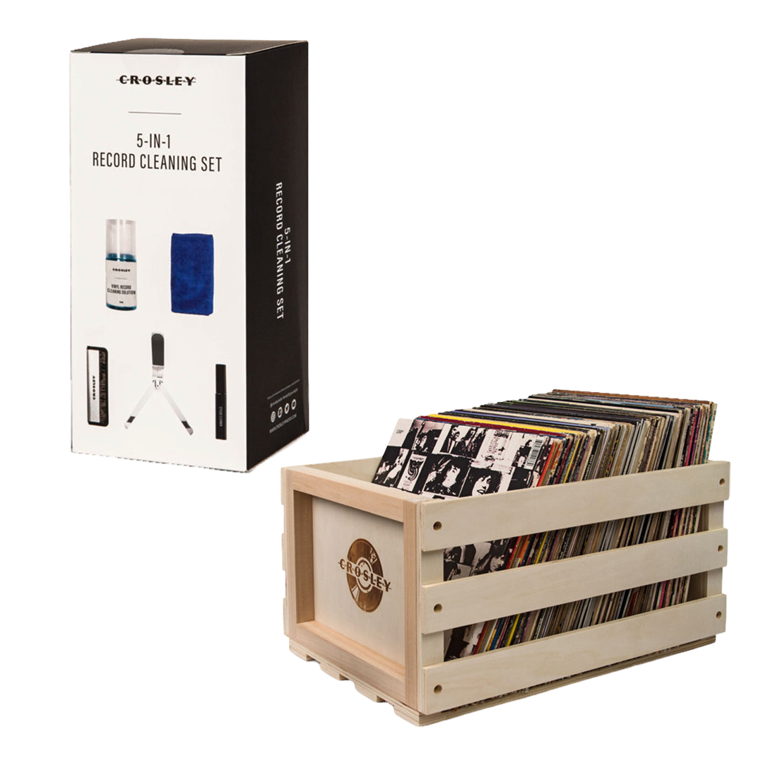 Crosley 5 In 1 Record Cleaning Set & Crosley Record Storage Crate Bundle