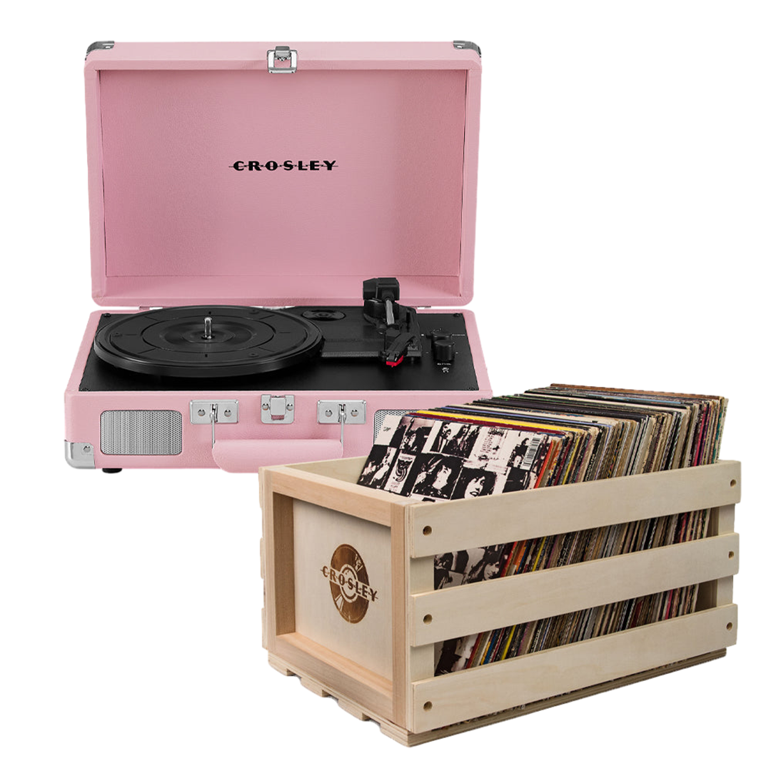 Crosley Cruiser Bluetooth Portable Turntable – Blush Pink + Bundled Crosley Record Storage Crate