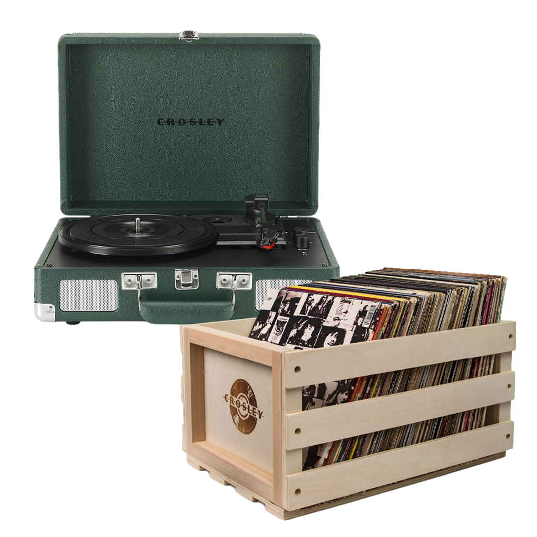 Crosley Cruiser Bluetooth Portable Turntable – Emerald Green + Bundled Crosley Record Storage Crate