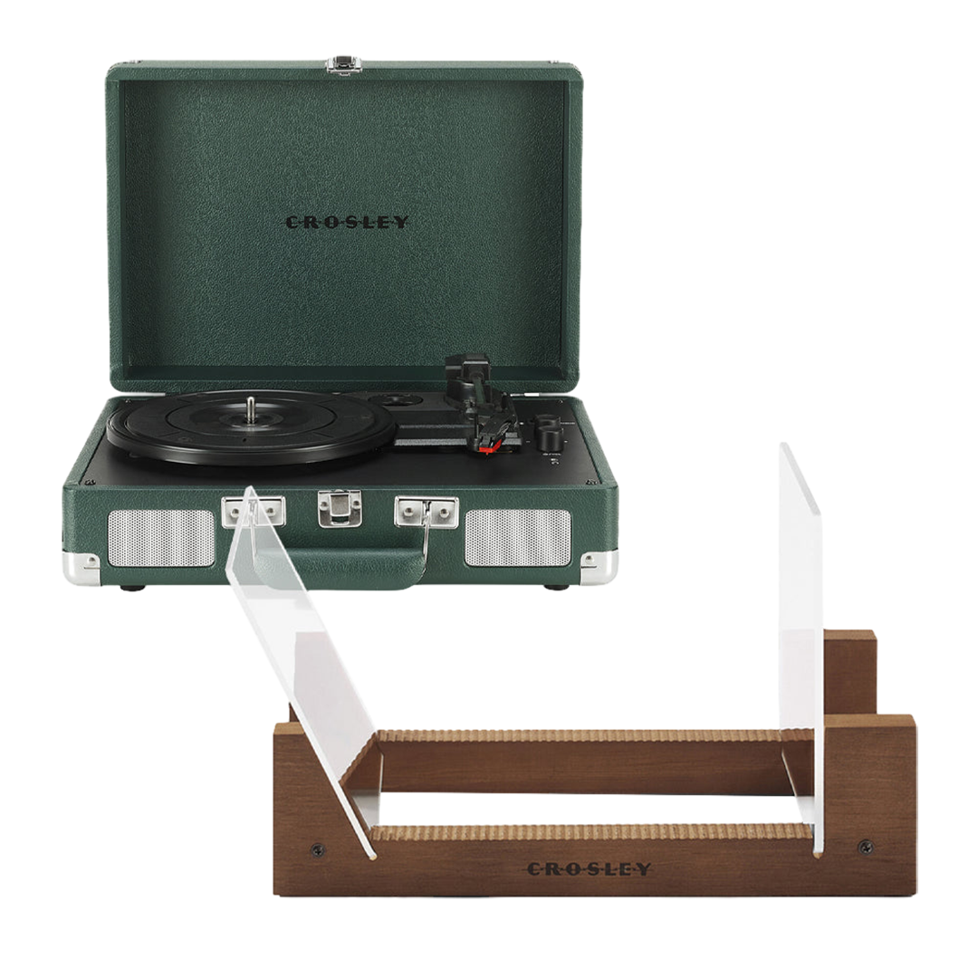 Crosley Cruiser Bluetooth Portable Turntable – Emerald Green + Bundled Crosley Record Storage Display Stand