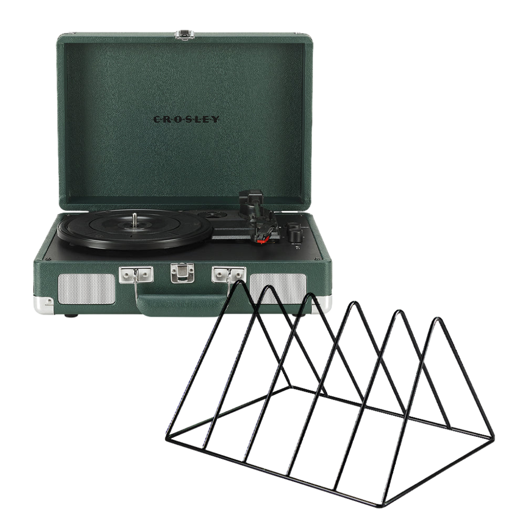 Crosley Cruiser Bluetooth Portable Turntable – Emerald Green + Gadhouse Vinyl Rack Bundle – Black