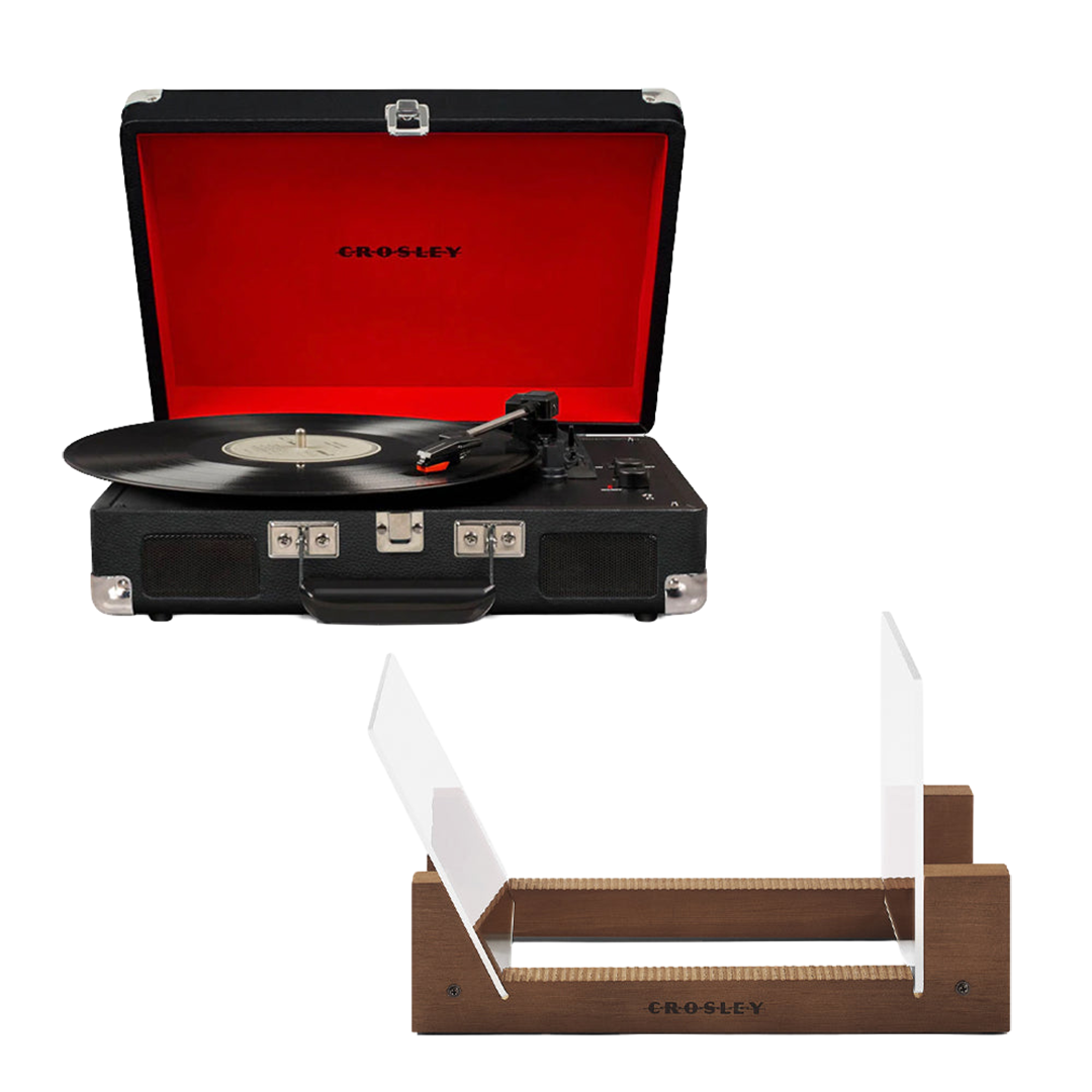 Crosley Cruiser Bluetooth Portable Turntable – Black + Bundled Crosley Record Storage Display Stand