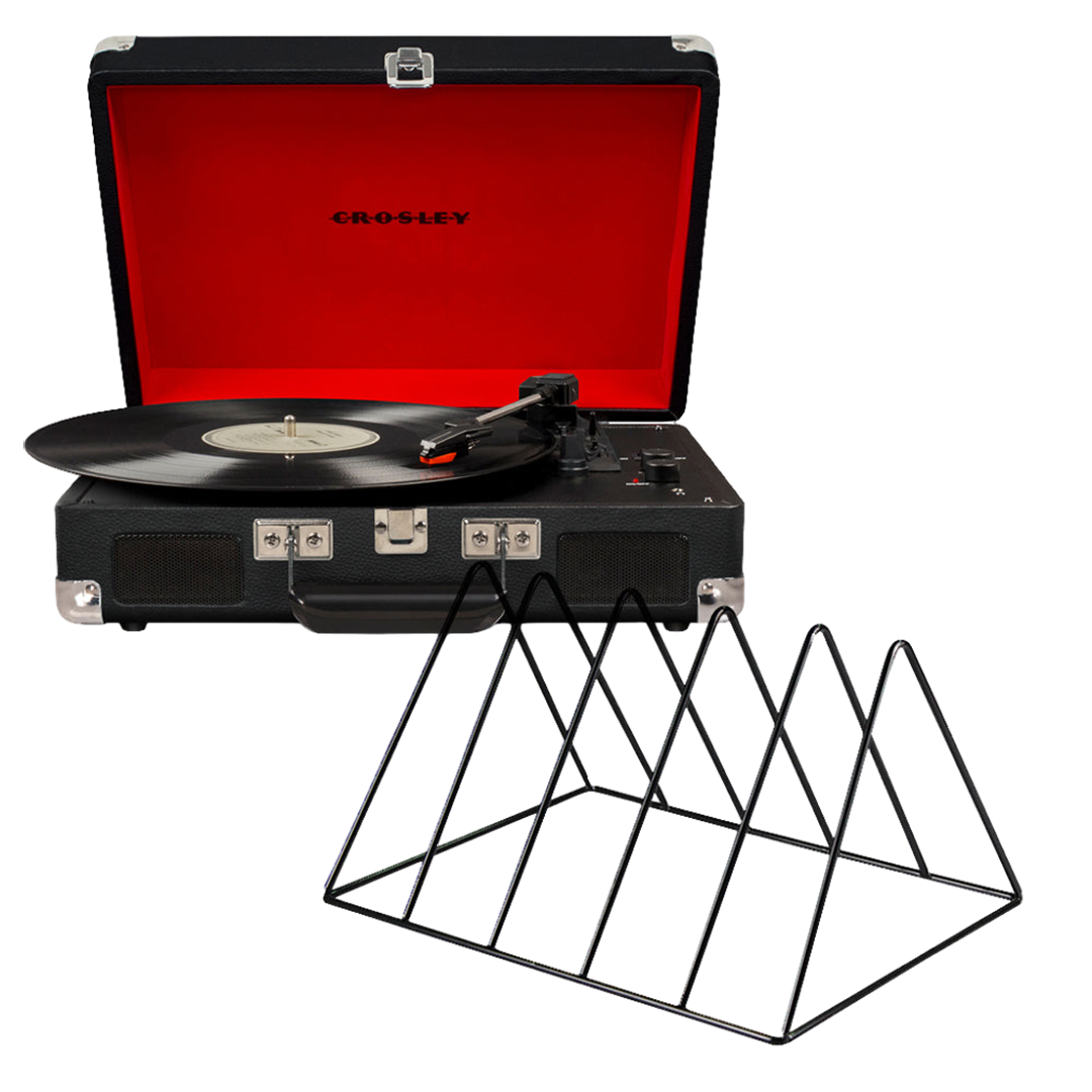 Crosley Cruiser Bluetooth Portable Turntable – Black + Gadhouse Vinyl Rack Bundle – Black