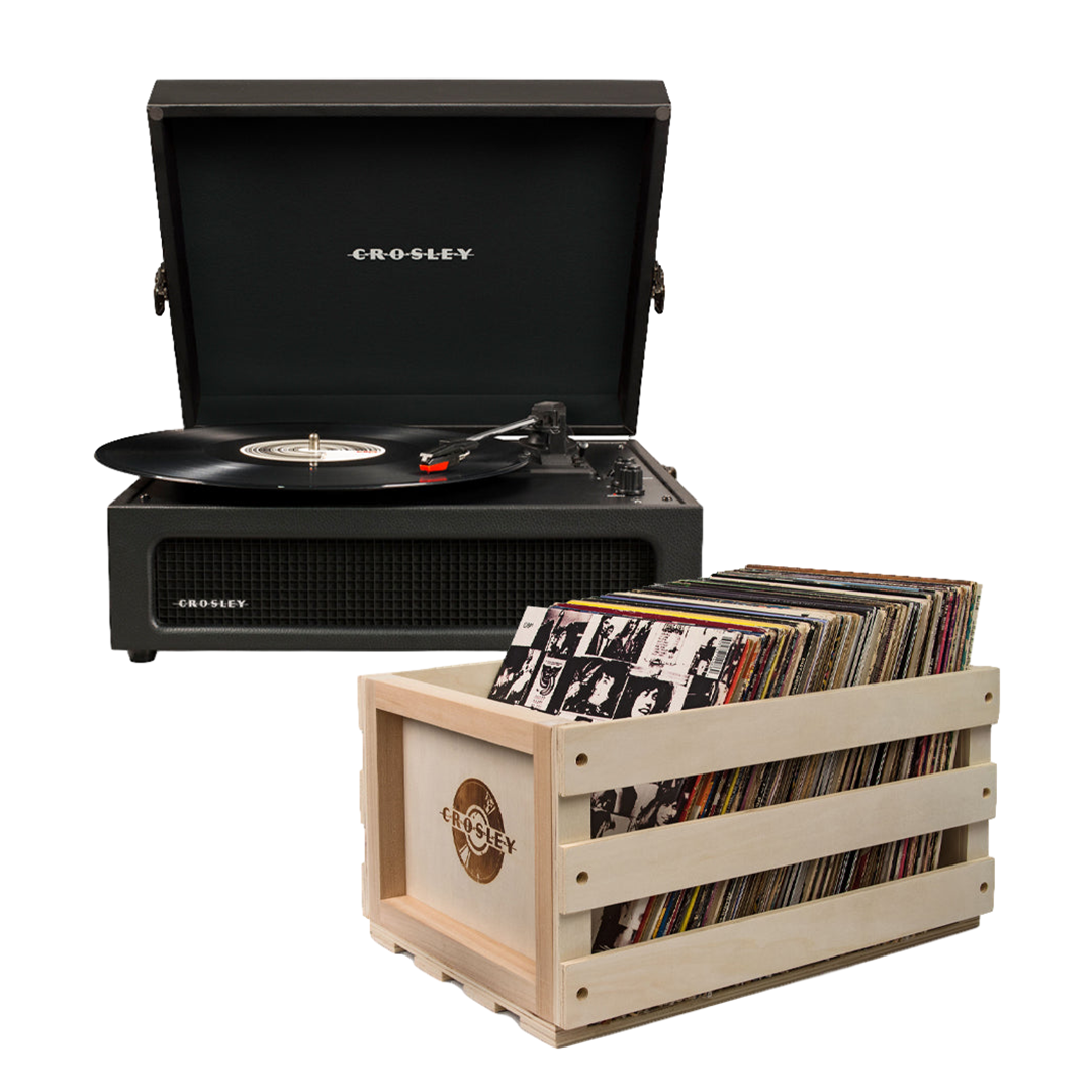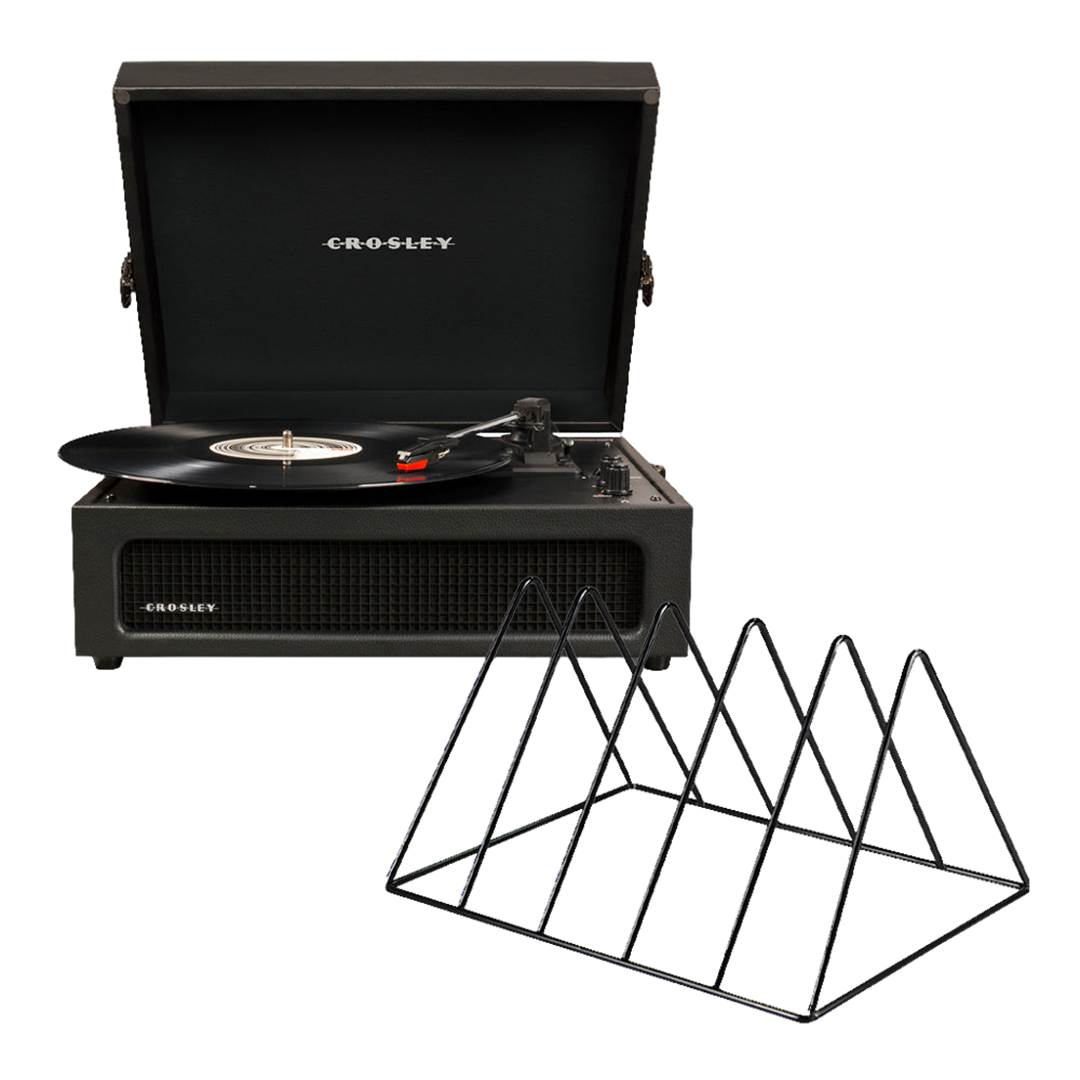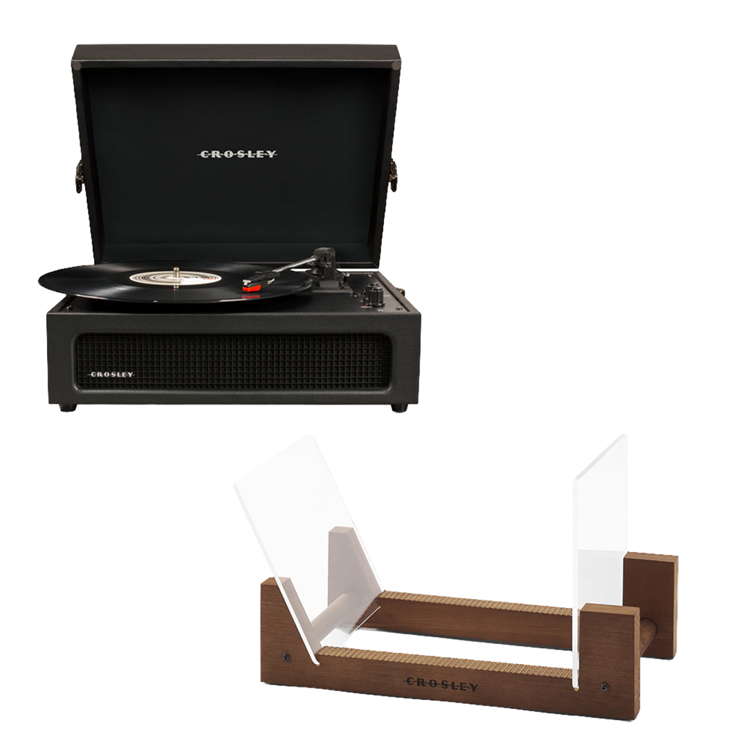 Crosley Voyager Bluetooth Portable Turntable – Black + Gadhouse Vinyl Rack Bundle – Black