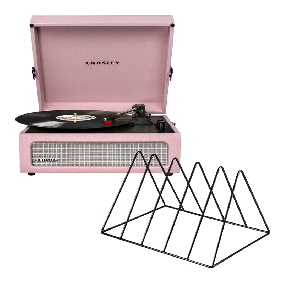 Crosley Voyager Bluetooth Portable Turntable – Amethyst + Gadhouse Vinyl Rack Bundle – Black