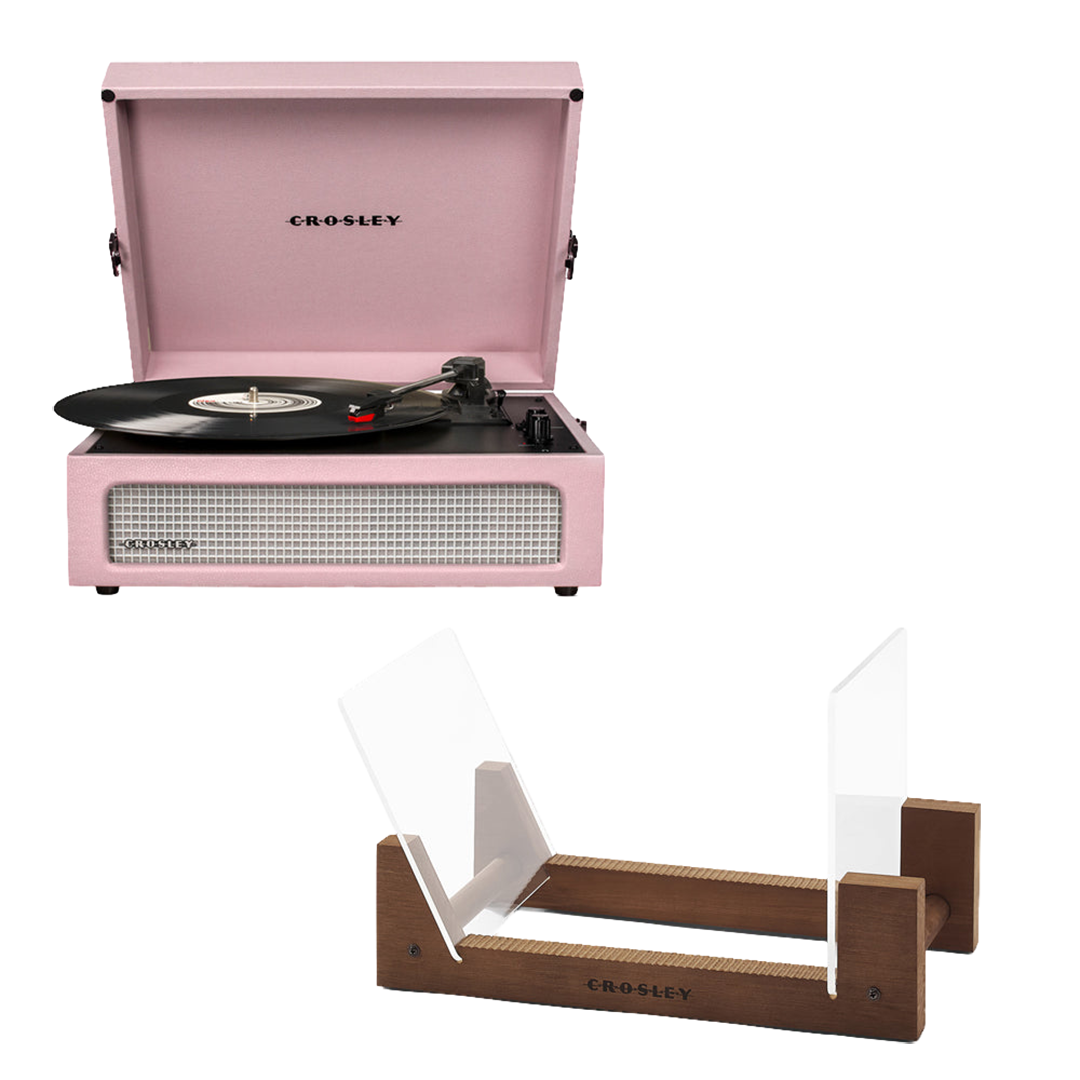 Crosley Voyager Bluetooth Portable Turntable – Amethyst + Bundled Crosley Record Storage Display Stand