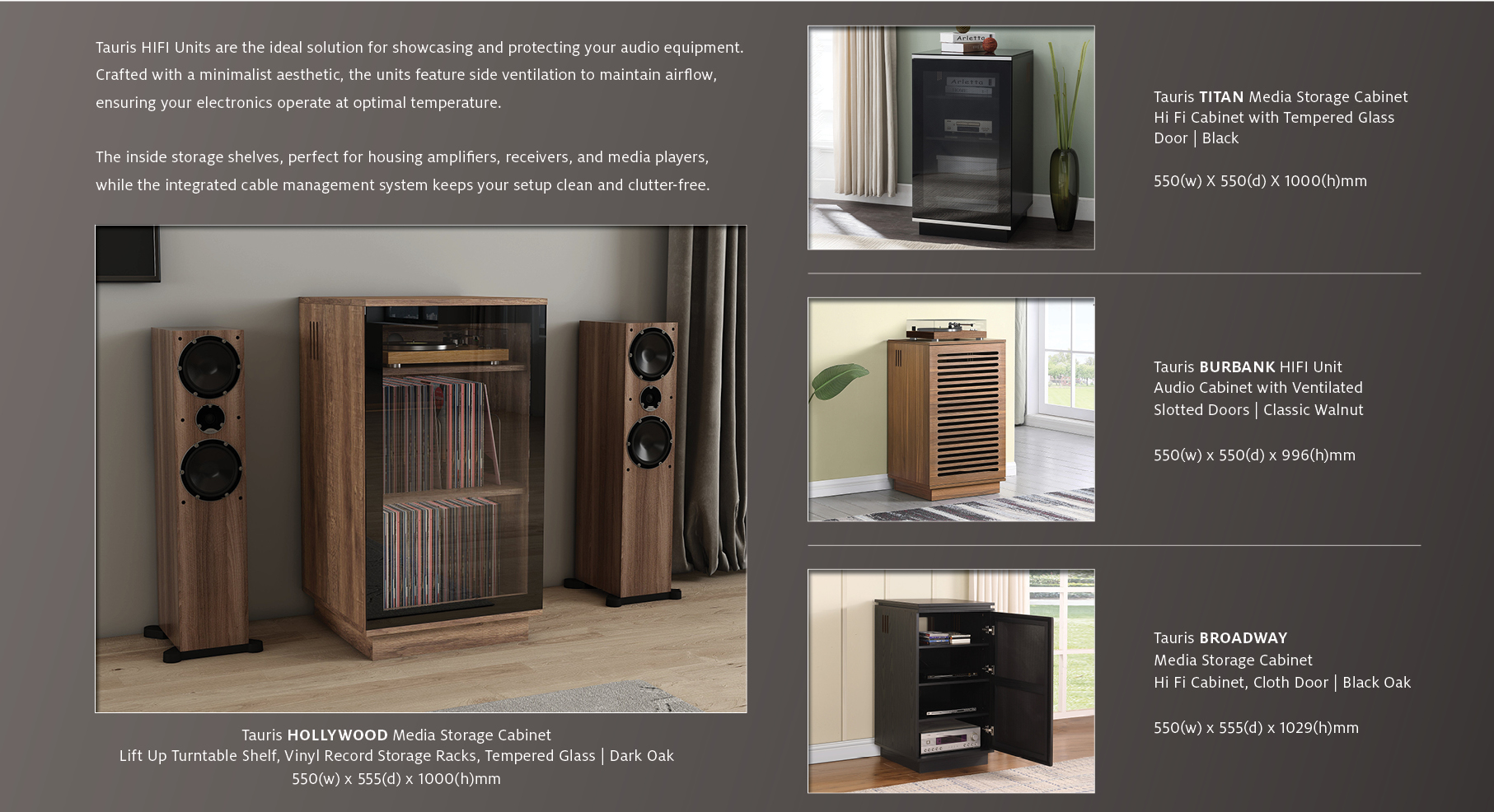 The right furniture can elevate your entire system. The Tauris EDISON Series is a stylish and practical hero of the range, but it’s only one part of Tauris’ broader Hi-Fi furniture offering.