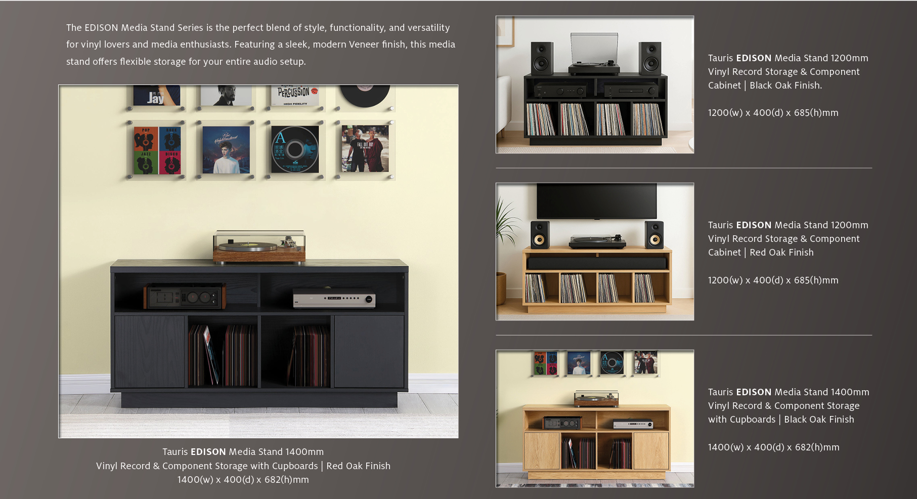 While EDISON is the newest highlight, Tauris offers a wider range of Hi-Fi furniture to suit different rooms, systems and styles. Their catalogue includes classic Hi-Fi racks, entertainment units, speaker stands and AV cabinets for larger component setups or home cinema systems.